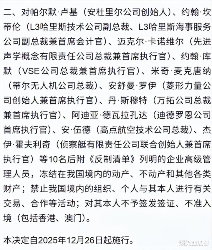 2025年12月26日,外交部依据《反外国制裁法》发布的那份清单,看似是针对美国最新一轮111亿美元对台军售的回击,但如果你具备产业视角的敏锐度,就会发现这次的“打击精度”甚至超过了导弹。
